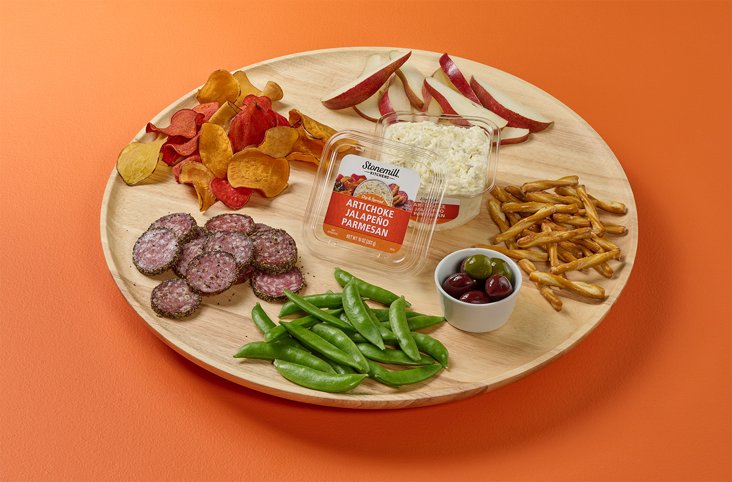 Mayonnaise (Soybean Oil, Water, Egg Yolks (Egg Yolks, Salt), Vinegar, Salt), Parmesan Cheese (Pasteurized Part-skim Milk, Cheese Culture, Salt, Enzymes), Artichokes (Artichoke Hearts, Water, Salt, Citric Acid), Sour Cream (Pasteurized Cultured Cream [Milk], Non-fat Milk Powder, Enzymes), Jalapeno Pepper (Jalapeno Peppers, Salt, Acetic Acid, Calcium Chloride [Firming Agent]), Cultured Dextrose To Protect Flavor, Modified Corn Starch, Lemon Juice Concentrate, Xanthan Gum, Citric Acid, Natamycin As An Antimicrobial.