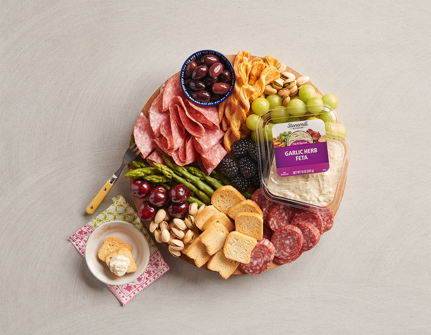 MAYONNAISE (SOYBEAN OIL, WATER, EGG YOLKS, VINEGAR, SALT), CREAM CHEESE (PASTEURIZED MILK, CREAM, CHEESE CULTURE, SALT, LOCUST BEAN GUM), SOUR CREAM (PASTEURIZED CULTURED CREAM [MILK], NON-FAT MILK POWDER, ENZYMES), FETA CHEESE ([PASTEURIZED MILK, SALT, CHEESE CULTURES, ENZYMES], POTATO STARCH (TO PREVENT CAKING)), BUTTERMILK (CULTURED LOW-FAT MILK, NON-FAT DRY MILK, SALT, MODIFIED CORN STARCH, SODIUM HEXAMETAPHOSPHATE, MONO AND DIGLYCERIDES, CARRAGEENAN, PECTIN, LOCUST BEAN GUM, VITAMIN A PALMITATE, VITAMIN D3), WATER, OLIVE OIL, SUGAR, CULTURED DEXTROSE TO PROTECT FLAVOR, MODIFIED CORN STARCH, GRANULATED GARLIC, DEHYDRATED ONION, BLACK PEPPER, XANTHAN GUM, DEHYDRATED PARSLEY, DILL, DRIED CHIVES, NATAMYCIN AS AN ANTIMICROBIAL.
